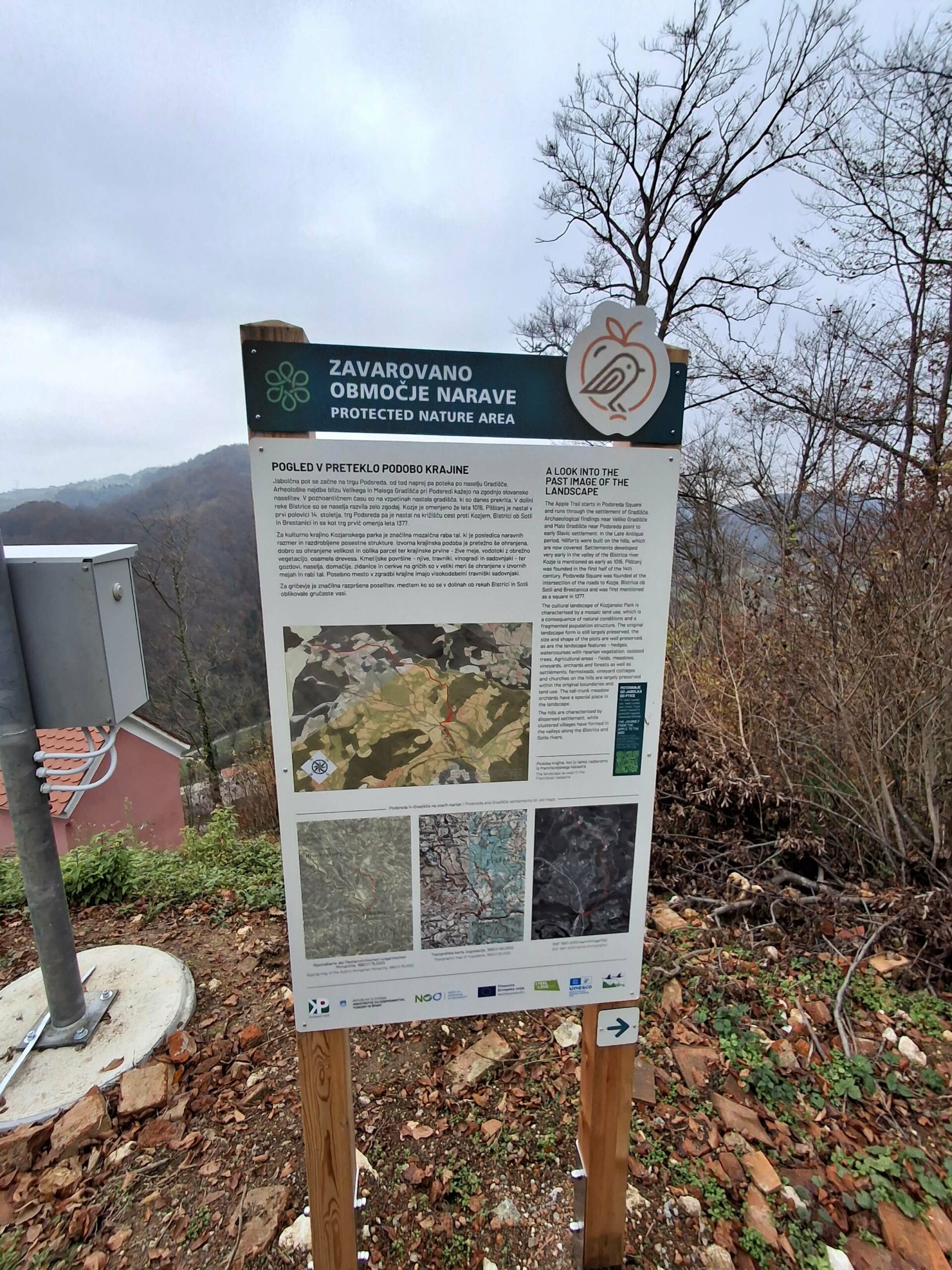 Nahaja se na stiku dinarskega, panonskega in predalpskega sveta. Občudujemo stik različnih geotektonskih , naravno geografskih enot, geoloških struktur in geomorfoloških značilnosti. Predvsem je tukaj v ospredju kulturna krajina, ki jo je ustvaril človek. Stari visoko debelni sadovnjaki so posebnost in edinstvenost krajine. Tako so nam predstavili novo tematsko pot – jabolčna pot, ki se zaključi v učnem centru sredi demonstracijskega sadovnjaka.