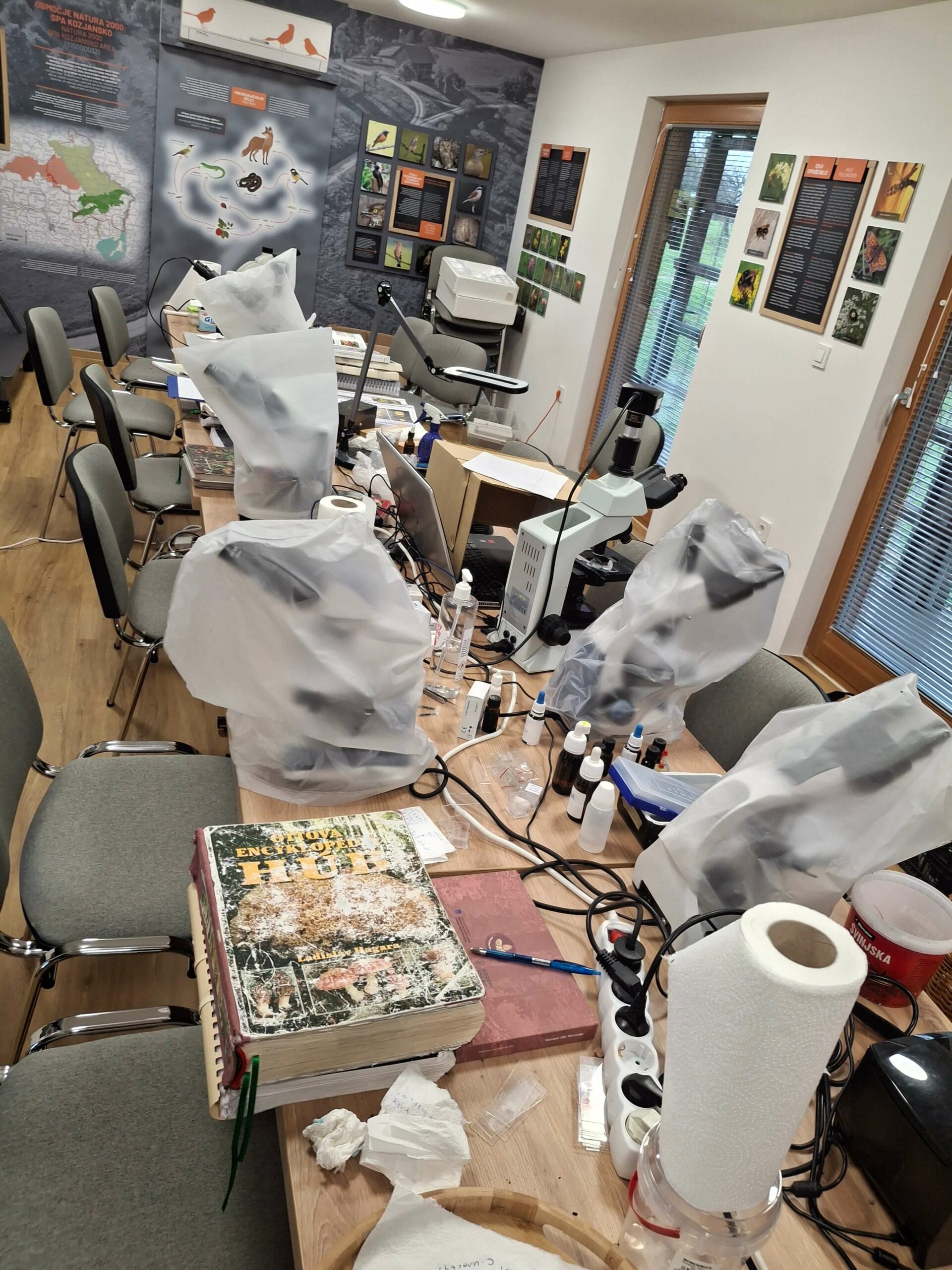 Slovenka gobarska zveza je imela v prostorih novega učnega centra svoje letno srečanje in lahko smo opazovali strokovnjake pri njihovem delu, videli razstavo gob, se preizkusili pri mikroskopiranju trosov, določanju vrste gob in še čem…