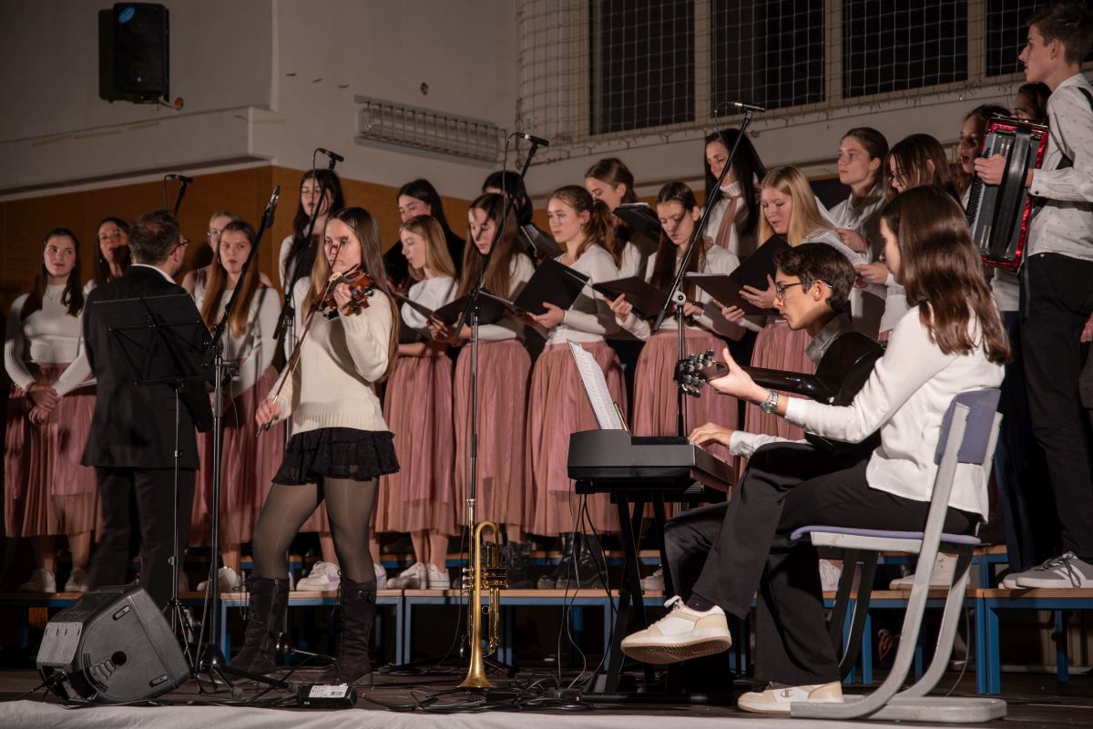 V četrtek, 27.11.2025 smo dijaki in učitelji izvedli že 17. dobrodelni večer. Tokratna nit nas je vodila s pesmijo do sanj. Nastopil je šolski zbor, bend, v zboru so skupaj z dijaki nastopili tudi učitelji. Nastopili so dijaki solisti, v triu, plesna skupina Impulz. Besede in glasba so se prepletale in nas odpeljale do besed v knjige, od tam pa do sanj, v neskončnost neba, misli, obzorja in še čez. Ponosni smo, da je celotna organizacija dogodka delo dijakov pred zaključnih letnikov. To je ena od nalog aktivnega državljanstva. Tako delo lahko opravimo le skupaj in skupaj smo močnejši.