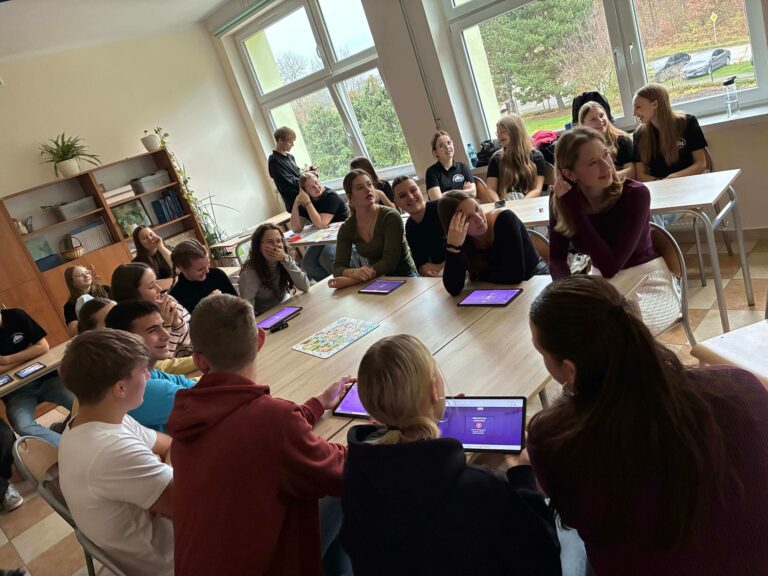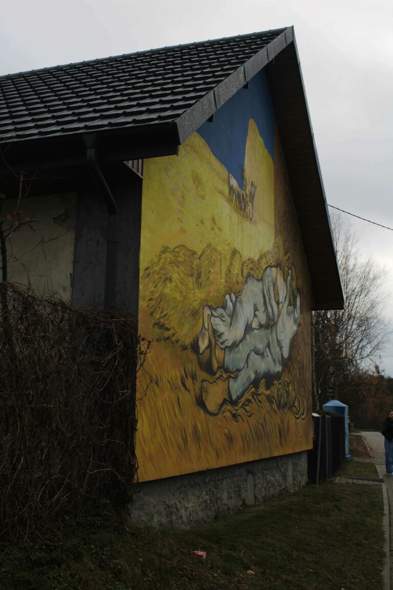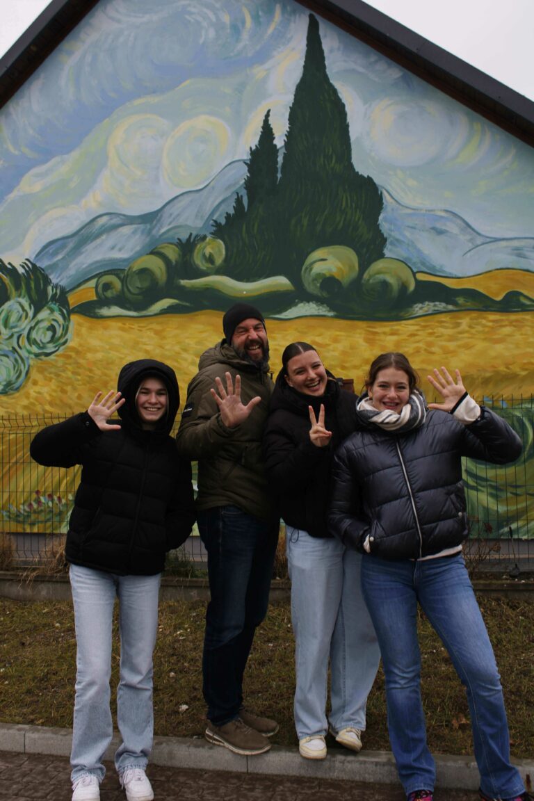 Tam smo se razdelili v tri skupine, kjer so nam poljski dijaki na zanimiv in poučen način predstavili Poljsko, njen jezik ter kulturne značilnosti. V šoli smo se počutili zelo sprejeti. Po prijaznem sprejemu smo se odpeljali v naselje Brzozki, kjer smo si ogledali okolico in občudovali čudovite poslikave Vincent van Gogh na tamkajšnjih hišah.