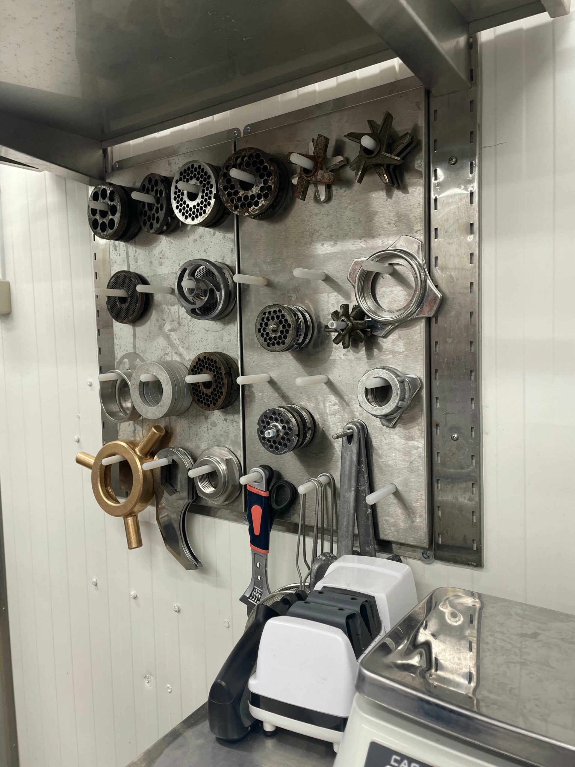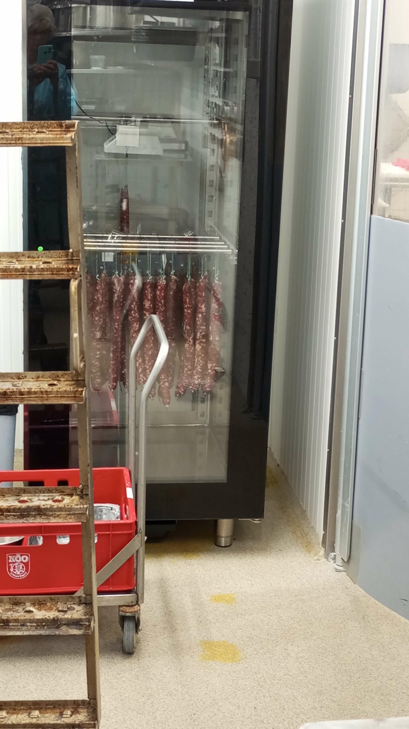 V enakih skupinah smo po različnih receptih ponovno mleli meso, tehtali začimbe ter pripravljeno maso shranili v posebne škatle do naslednjega dne. Ob koncu delavnice smo očistili delovni prostor in se poslovili od naše mentorice Eve.