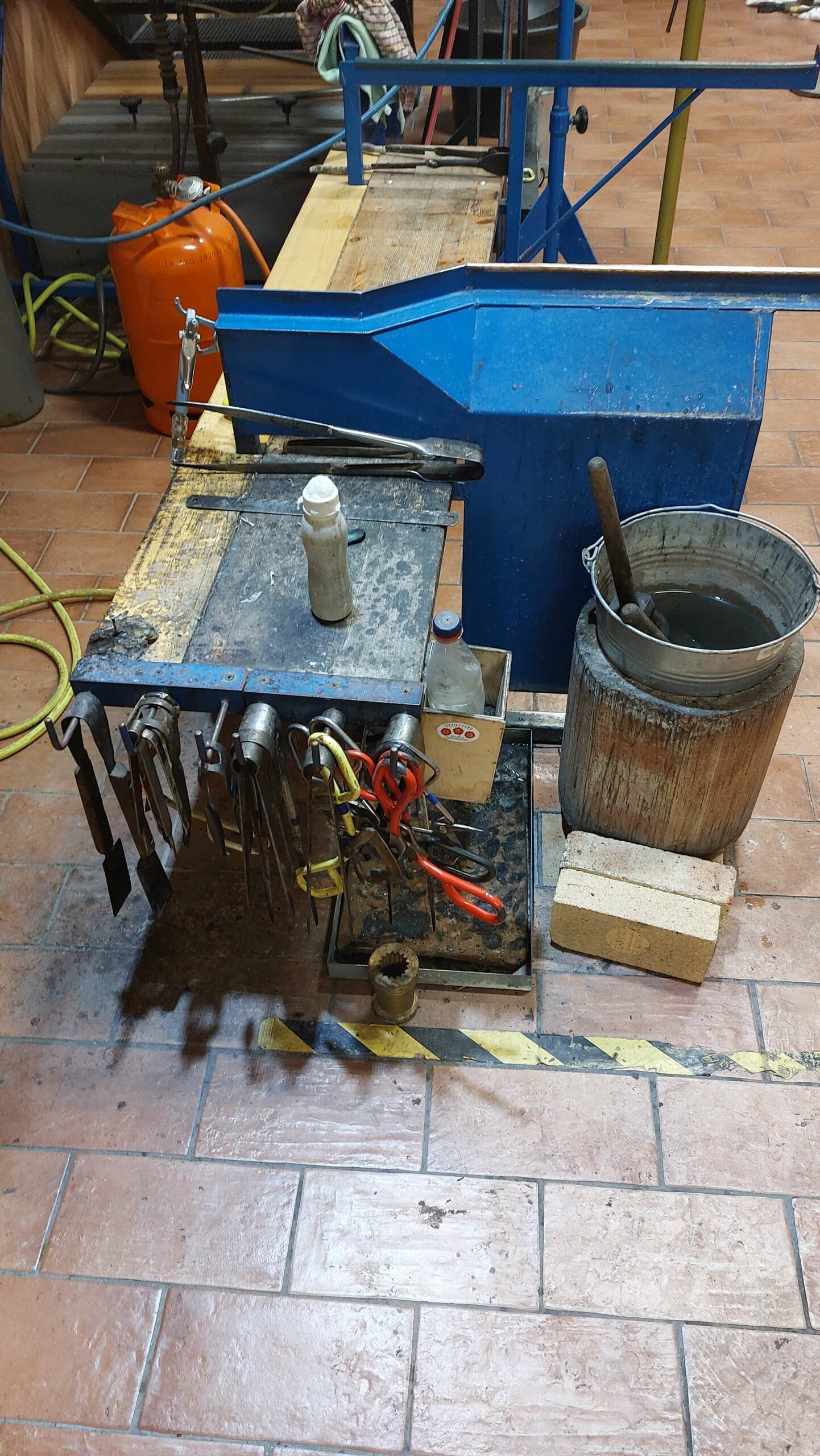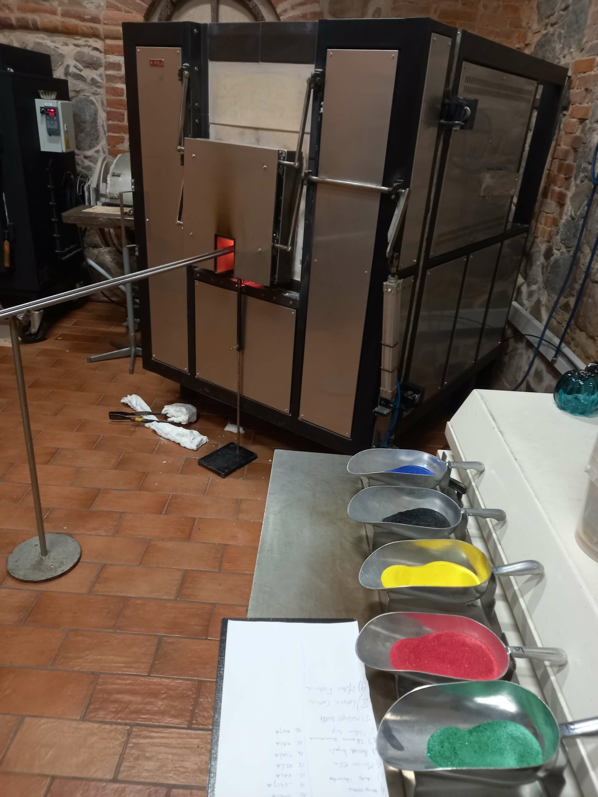 Utrujene, a še vedno polne navdušenja, smo se skupaj z dijaki iz Francije in našo vodičko Katrin peš odpravili do delavnice pihanja stekla. Tam nas je pričakal učitelj pihanja stekla s pomočnico. Razdelili smo se v dve skupini – dijaki iz Francije so bili prvi, sledile pa smo dijakinje iz Slovenije.