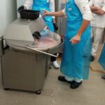 Čas je hitro minil in bližal se je trenutek za kosilo, zato smo delovne površine skrbno očistili, jih zapustili ter se prepustili čudovitim vonjavam in okusom kosila. Le še minutka ali dve – in že je napočil čas za nadaljevanje dela v mesarski delavnici.