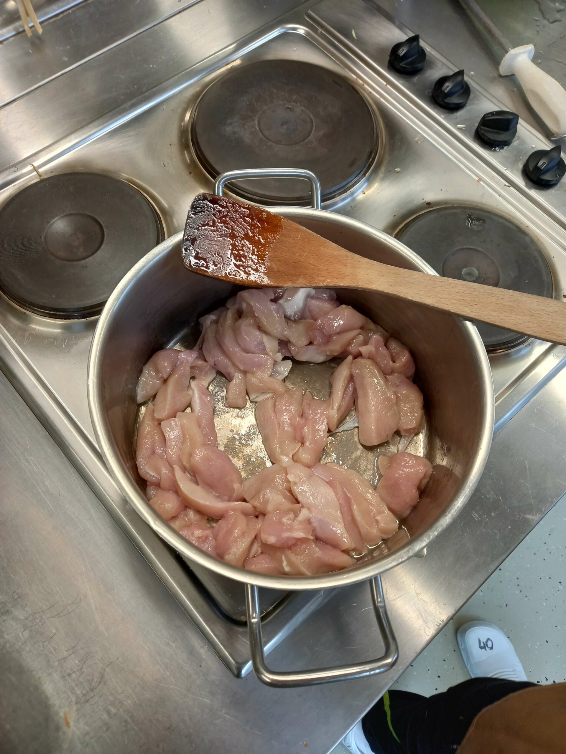Sledila je še priprava posebne jedi – žepkov iz piščančje kože, ki smo jih napolnile z nadevom iz zmletega mesa, sira, česna, soli in popra. Nastali izdelki so nas vse navdušili, saj so bili nekaj povsem novega.