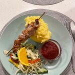 Po prihodu v hostel nas je v jedilnici že pozdravil prijeten vonj večerje, ki nas je zvabil k mizam. Zaželeli smo si dober tek in z užitkom pojedli odlično večerjo, s “smetano na vrhu” – čudovito sladico iz mlečne kreme in mangove marmelade.