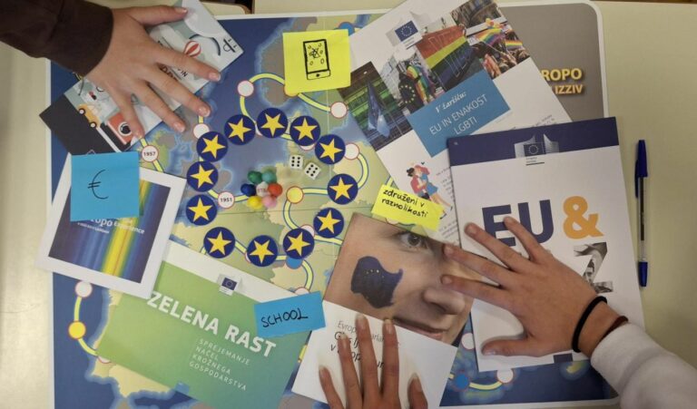 Nina in Elijas obiskujeta 2. letnik biotehniške gimnazije in sta se vključila v eTwinning projekt »Beyond Borders: Democracy in the Digital Age«. Naslov bi lahko prevedli »Onkraj meja – Demokracija v digitalni dobi«. Vključenih je kar 104 dijakov iz različnih evropskih držav. Sodeluje še 10 učiteljev mentorjev.