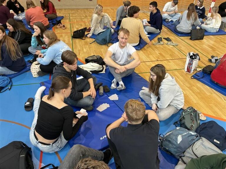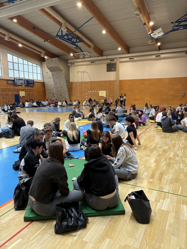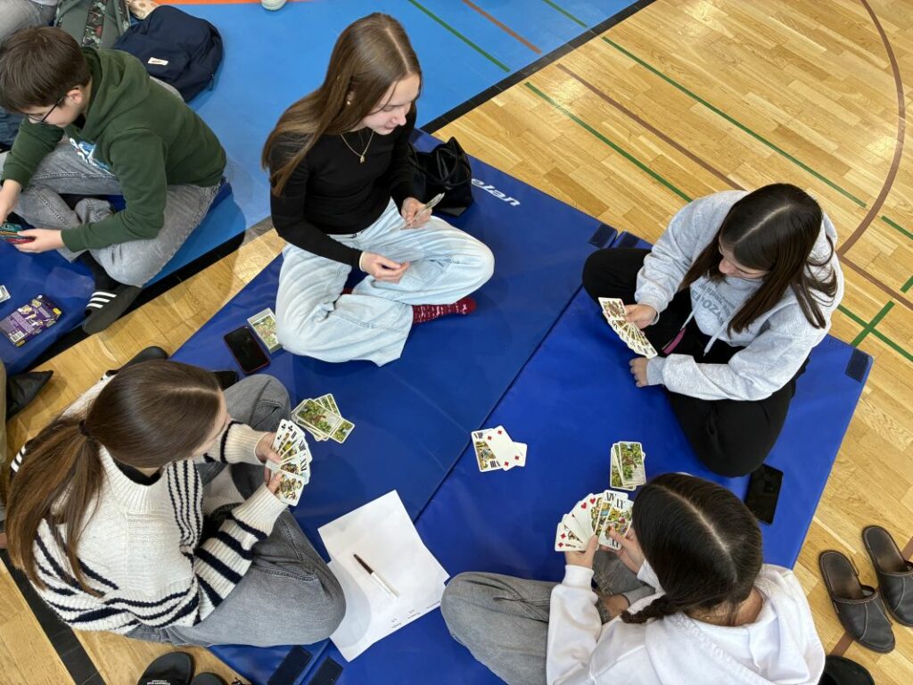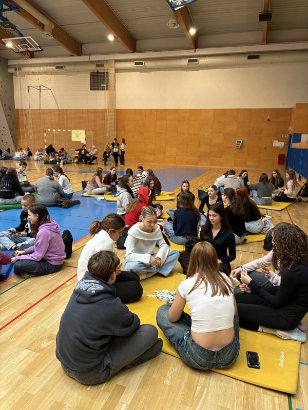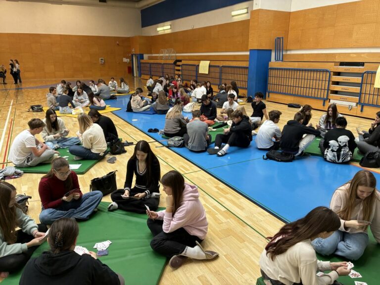 V torek, 23. decembra smo se vsi gimnazijci z razredniki zbrali v športni dvorani in zadnji dve uri pestrega dopoldanskega dogajanja na šoli preživeli skupaj med igranjem različnih družabnih iger, od taroka in remija, do človek ne jezi se, enke in podobno. Med igrami smo se posladkali s pecivom, ki so ga pripravile dijakinje in dijaki vsakega razreda.