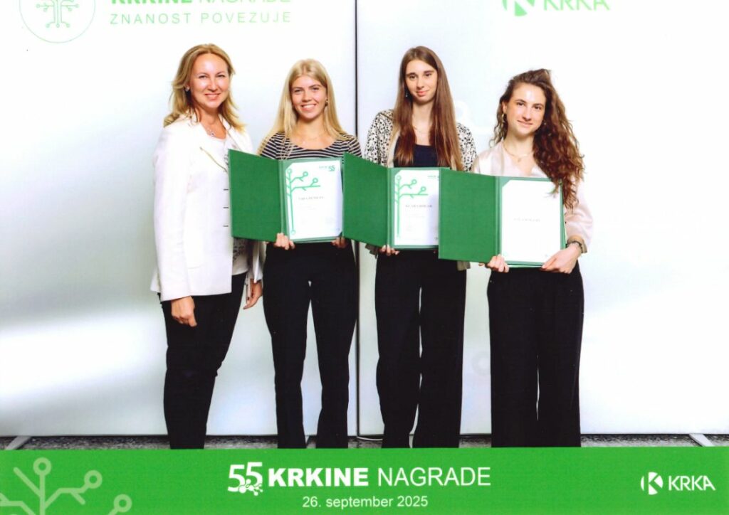 Podelitev Krkinih nagrad in priznanj mladim raziskovalcem je bil tudi letos velik dogodek. Dogajal se je 26. 9. 2025, v Novem mestu, na sedežu podjetja Krka (#krkinenagrade, @krkinenagrade in @krkaofficial), kjer so naše gimnazijke 4. letnika biotehniške gimnazije Biotehniškega centra Naklo, prejele Krkino nagrado za svoje raziskovalno delo.
