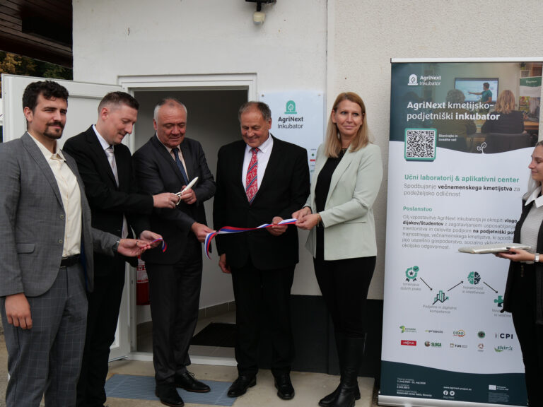 Z veseljem sporočamo, da smo s sodelovanjem v mednarodnem projektu AgriNext, dosegli pomemben mejnik na poti podpore trajnostnim inovacijam v večnamenskem kmetijstvu. 15. oktobra 2025 je na Biotehniškem centru Naklo v Strahinju uradno zaživelo Podjetniško podporno okolje AgriNext (inkubator), kar pomeni uspešno vzpostavitev enega od treh novih podjetniških inkubatorjev, razvitih v okviru projekta AgriNext.