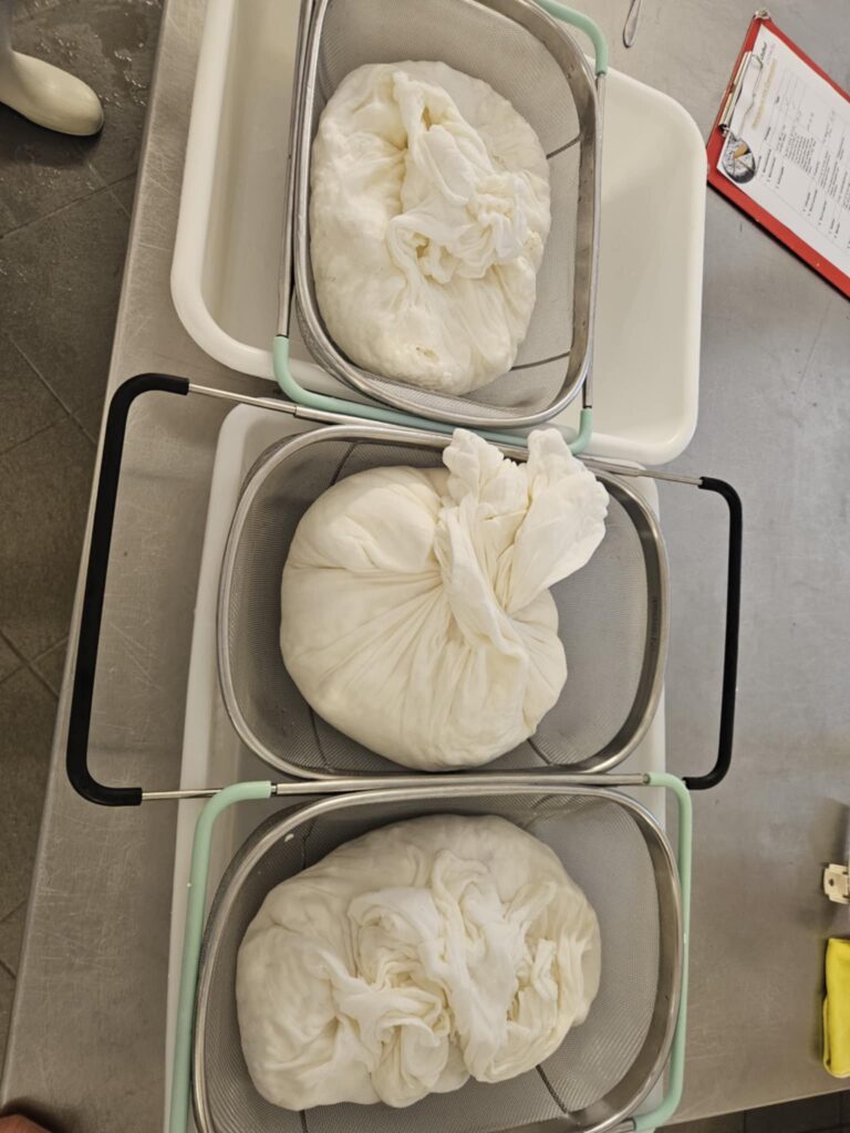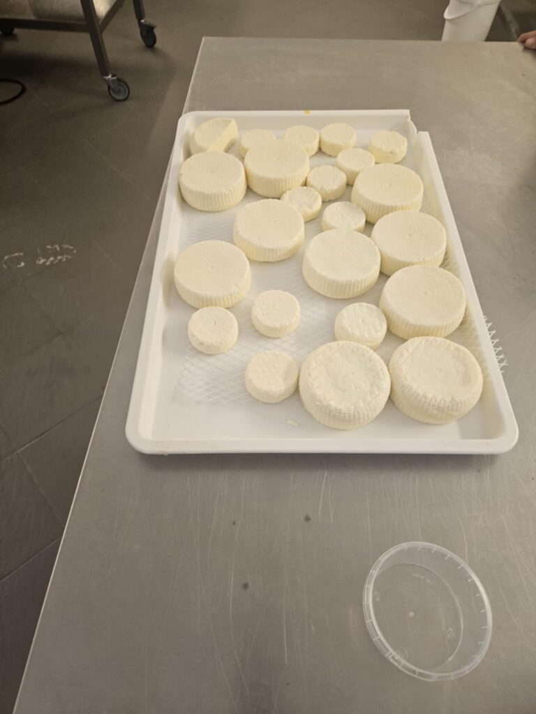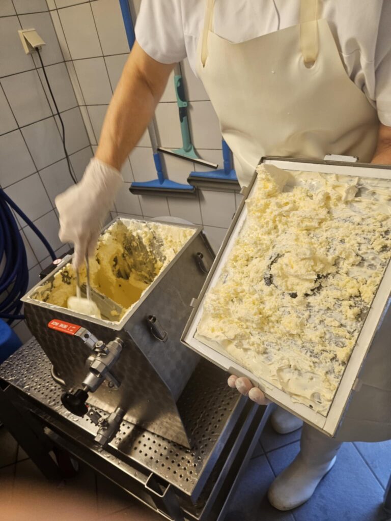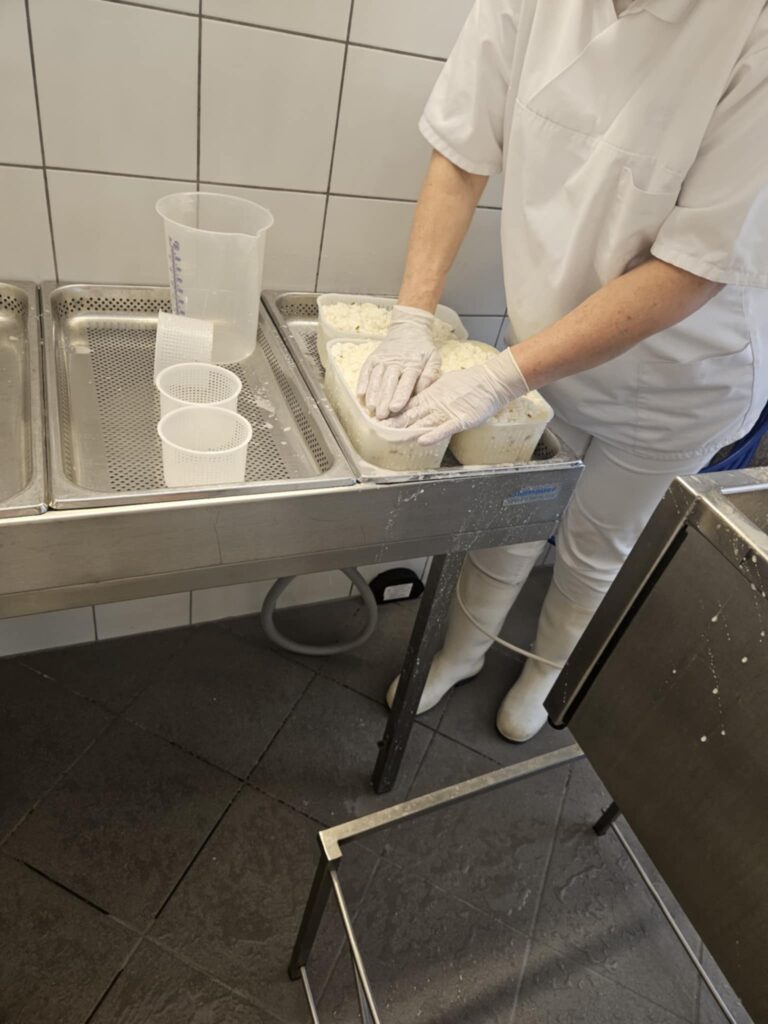 V torek, 10. 9. 2025, smo pričeli z izobraževanjem v šolski mlekarski delavnici šole. Začeli smo z predavanji o sestavi ter lastnosti mleka, ki so pomembne pri izdelavi različnih mlečnih izdelkov in o ustrezni izbiri ter dodajanju kultur in sirišč. Naredili smo albuminsko skuto, sveži sir, kislo smetano, sir za žar in mladi sir. Naučili smo se pravilnega postopka razreza koaguluma in ustreznega sušenja sirnega zrna pri izdelavi sira.