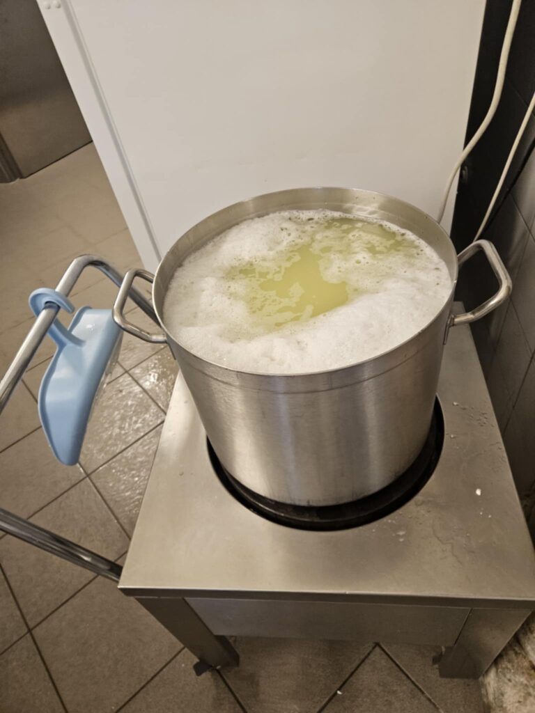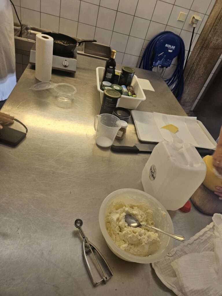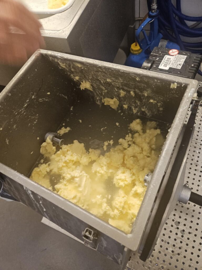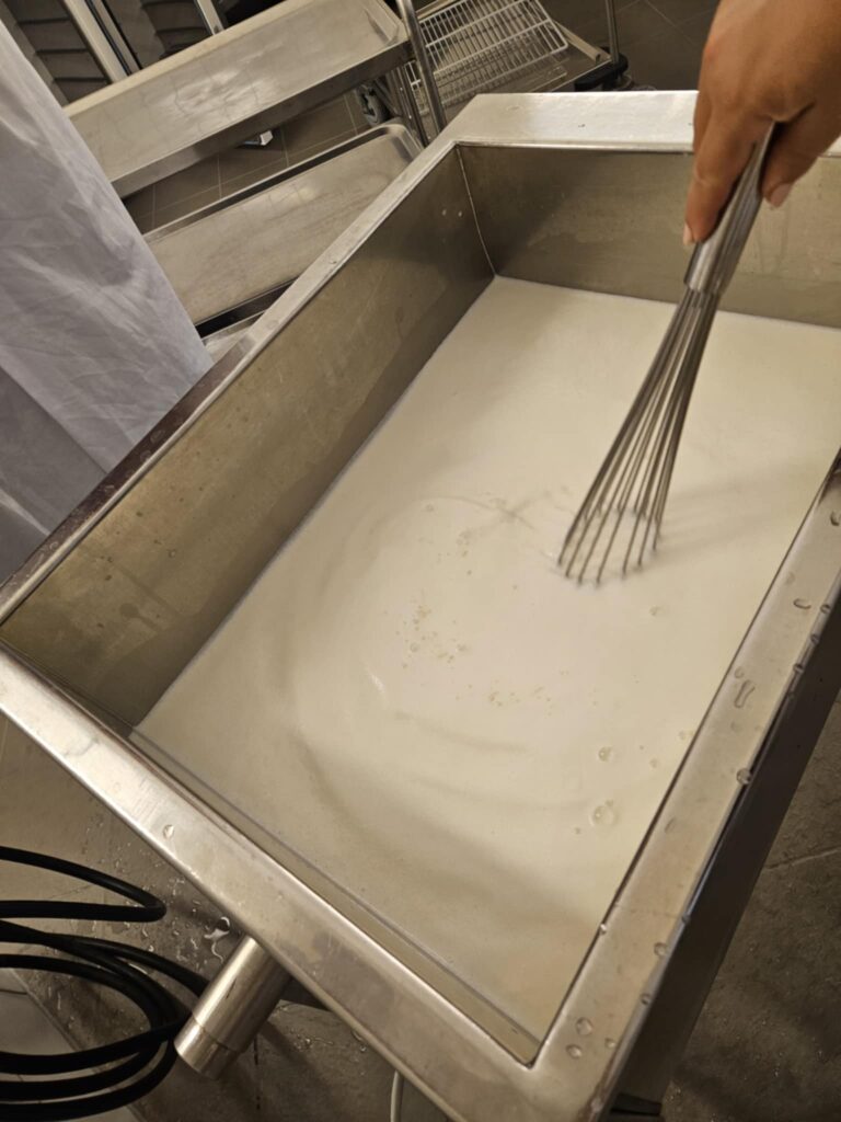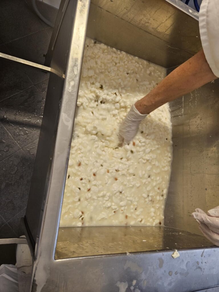 V torek, 10. 9. 2025, smo pričeli z izobraževanjem v šolski mlekarski delavnici šole. Začeli smo z predavanji o sestavi ter lastnosti mleka, ki so pomembne pri izdelavi različnih mlečnih izdelkov in o ustrezni izbiri ter dodajanju kultur in sirišč. Naredili smo albuminsko skuto, sveži sir, kislo smetano, sir za žar in mladi sir. Naučili smo se pravilnega postopka razreza koaguluma in ustreznega sušenja sirnega zrna pri izdelavi sira.