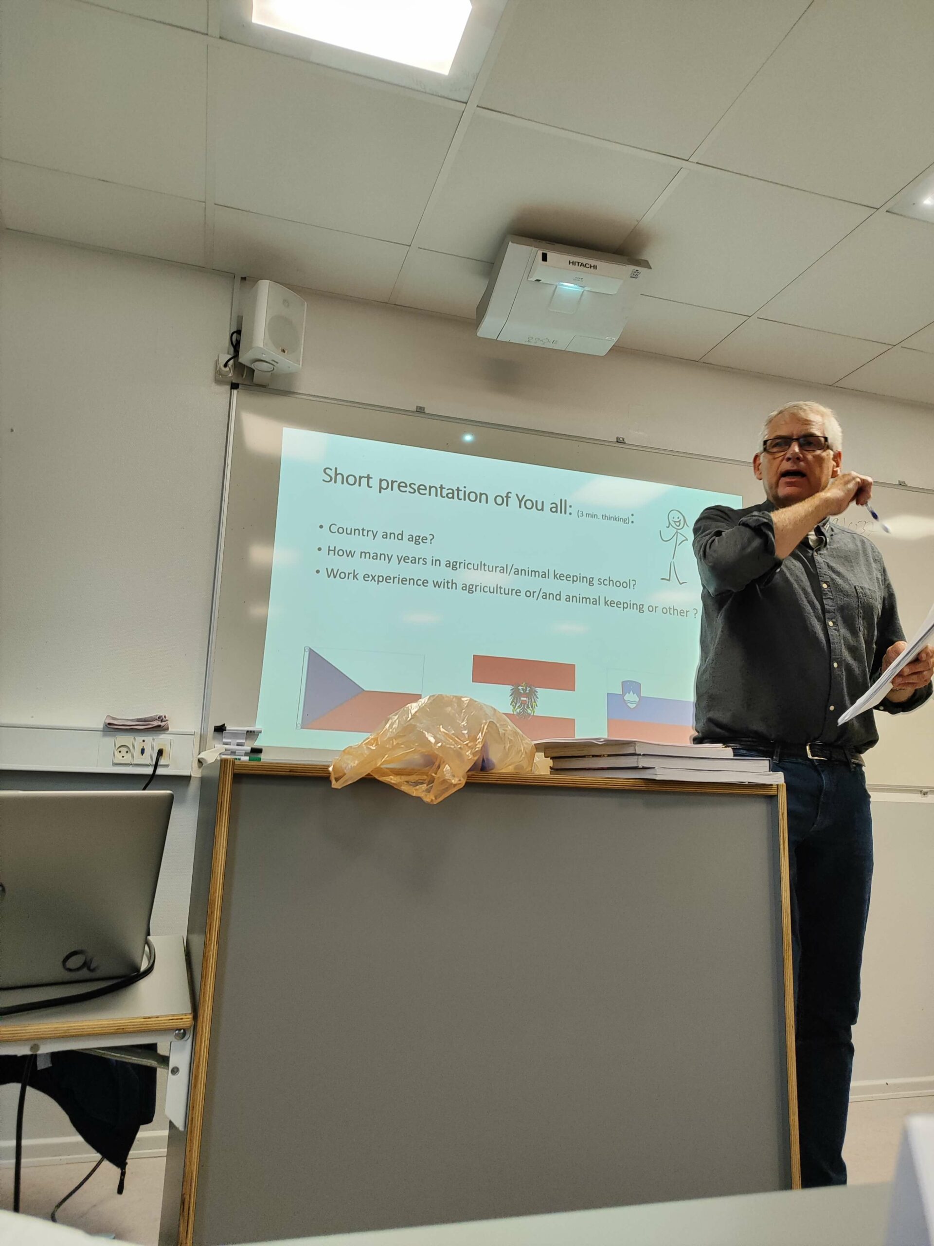 Pouk v novem tednu se je ob 8.15 začel s športno vzgojo pod mentorstvom profesorja športne vzgoje, našega koordinatorja, Andreasa. Igrali smo badminton, nogomet in igro z žogo – med dvema ognjema. Pri badmintonu smo skupinsko premagali dijakinje iz Češke, kljub temu, da so v skupini imele zelo športno in tekmovalno punco z imenom Tina. Igranje badmintona je bilo zabavno, veliko smo se smejali, saj smo večkrat kar sami sebi naredili negativno točko. Nogometna skupina, ki so jo sestavljali naslednji igralci Tereza in Jan (SLO), Tina in Iva (CZE) ter Johan in Melisa (AUT) je bila zaradi izredne borbe Tine najbolj uspešna in je v nogometu zmagala z edinim, a pomembnim golom tekme. Po krajšem premoru za dehidracijo smo nadaljevali s športnimi aktivnostmi. Andreas nas je ponovno premešal in sestavil nove ekipe v kateri je bila le Tereza, edina dijakinja iz Slovenije, ostali so bili dijaki iz Avstrije. Rezervna igralka je bila Tina, dijakinja iz Češke, a žal tudi Tina ni bila dovolj za našo novo zmago. Igra ni niti bila tako pomembna kot je bilo pomembno, da smo se z dijakinjami iz Avstrije še bolj povezale, Tereza pa se je celo naučila že nekaj nemških osnov za hitro, preprosto, a pomembno komunikacijo. A pred nami je bila nova izbira profesorja športne vzgoje Andreasa v nove tri skupine. Tri novo nastale mešane skupine so nam tokrat omogočale, da smo se za igranje nogometa, lahko med polčasi celo zamenjali. Menjava je pomenilo, da je ena skupina počivala, drugi dve pa sta igrali. Športna aktivnost je minila hitro in bila je res zelo zanimiva in zelo zabavna ter nas je dijake iz treh držav še bolj povezala. Profesor Andreas nas je iz dvorane spustil 10 min pred koncem ure, da smo se lahko v miru umili in pripravili na naslednjo uro. Z zanimanjem smo čakali na naslednjo šolsko uro s temo Proizvodnja mleka in mlečnih izdelkov. Profesor Michael, ki ima veliko izkušenj s področja živinoreje, nam je veliko zanimivega povedal o živinoreji. Sam sicer ni odraščal na kmetiji, a je kljub temu študiral živinorejo. Med študijem je spoznal svojo ženo, s katero danes vodita kmetijo in z velikim veseljem širita svoje znanje na nas mladino ne glede na narodnost. Slišali smo veliko o vzgoji telet, načrtni inseminaciji telic ter se seznanili z delovanjem povprečne kmetije na Danskem s poudarkom na vpliv in delovanje nanjo s pomočjo somatskih celic. Po krajšem odmoru smo nadaljevali pouk na način, da je vsak izmed nas učencev je dobil svojo knjigo o živinoreji (v angleščini) z nalogo, da iz nje izpišemo tisto, kar mislimo, da je v knjigi bistveno oziroma najpomembnejše. Pouk danes je bil predvsem za nas zelo zanimiv, saj je bil poudarek na temi, ki nas dijake in dijakinje iz Slovenije izredno zanima in to je področje našega dela in življenja ne le v šoli ampak tudi doma – to so krave. Delo po skupinah je potekalo tekoče, brez težav, kljub temu da je bil pouk v tujem jeziku.