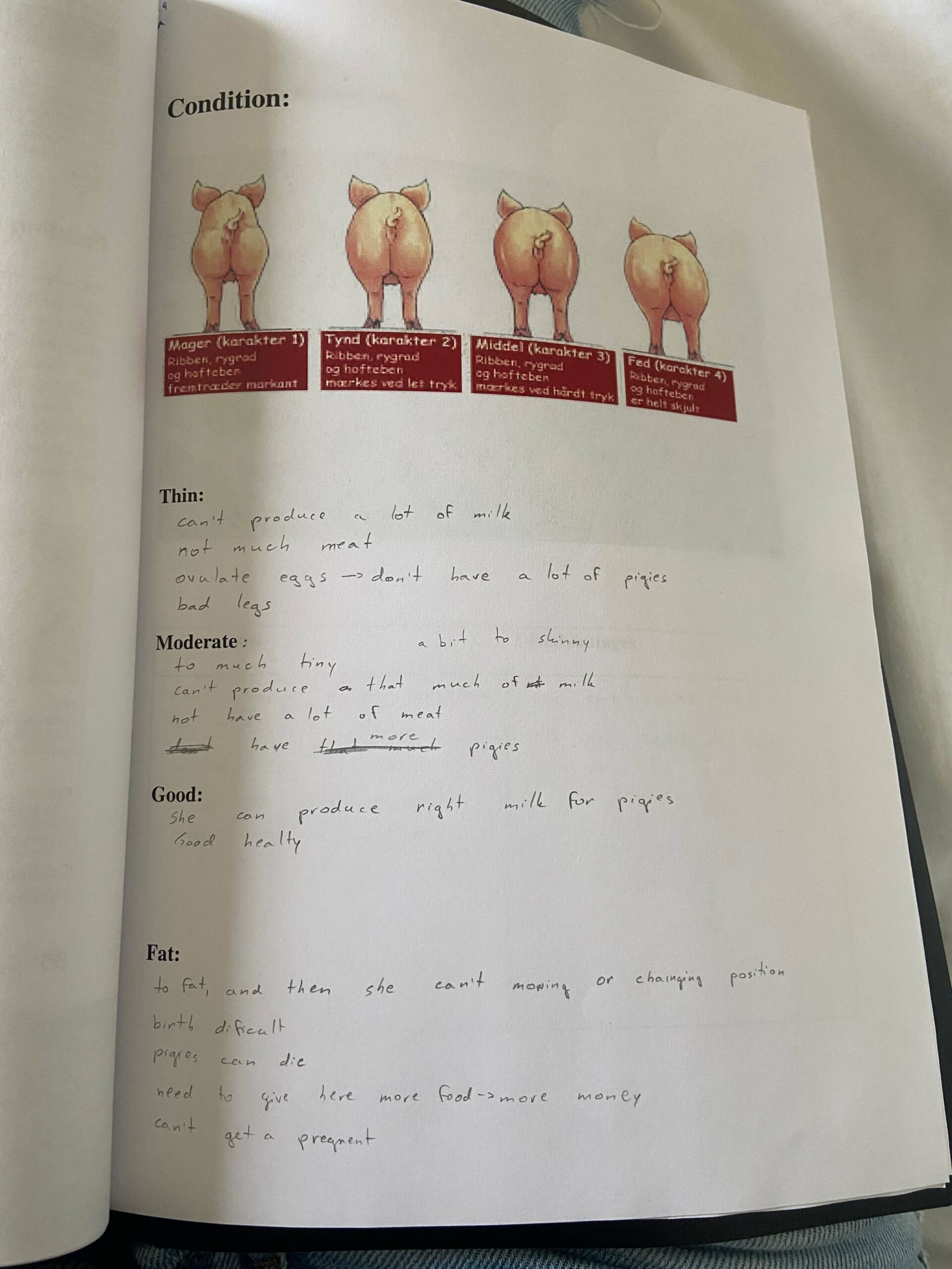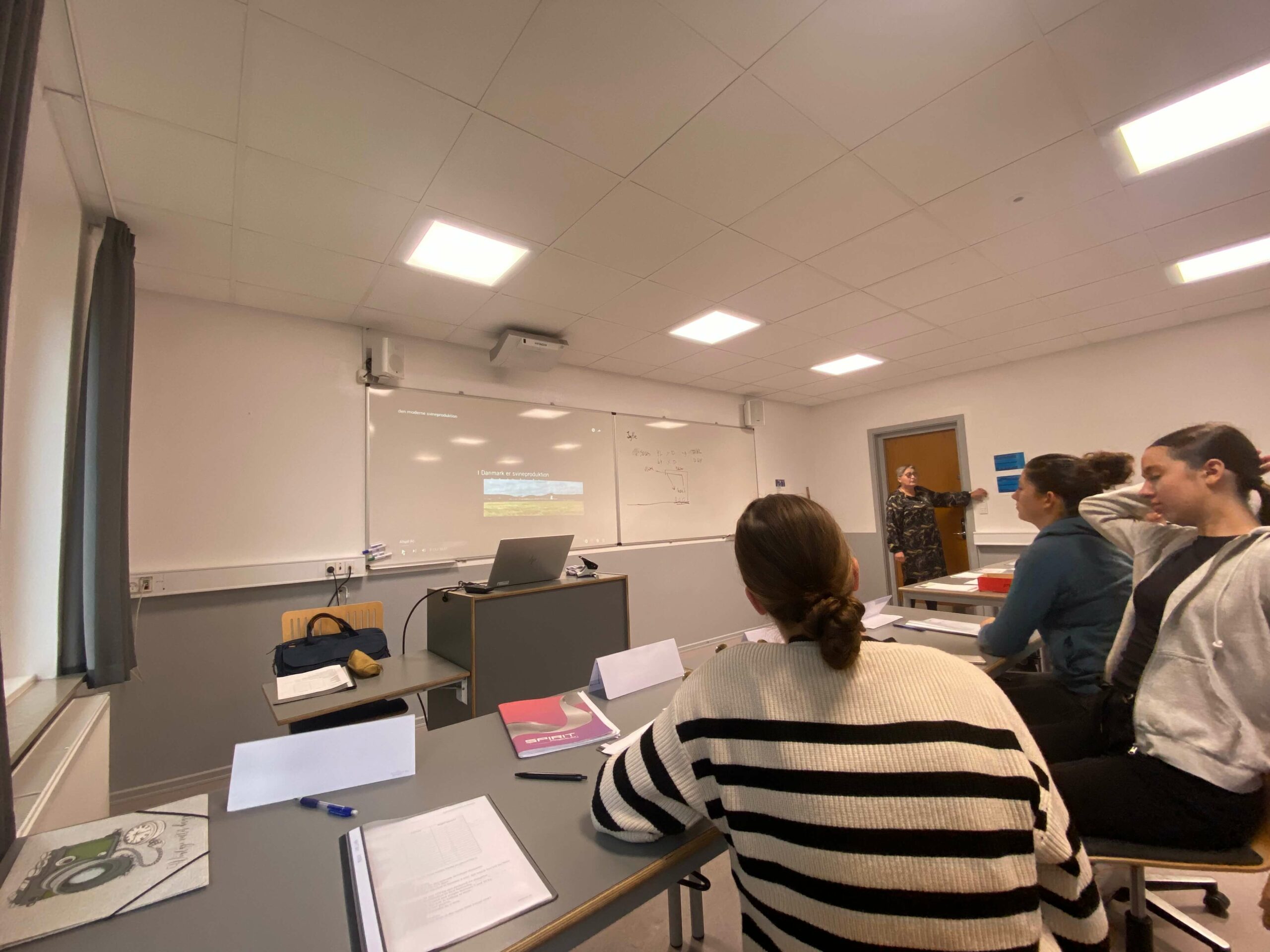V času našega pouka sta se učiteljici v spremstvu danskega učitelja za govedorejo odpeljali na obisk dveh večjih govedorejsko usmerjenih kmetij, ki sta bili »prava paša« za oči. Prva kmetija je imela 270 molznic holstein pasme ter 400 hektarov obdelovalne zemlje. Druga kmetija je imela 350 molznic jersey z 200 hektari obdelovalne površine. Kljub razsežnosti obeh farm, ki jih imajo lastniki ali v lasti ali v najemu je za posamično žival dobro poskrbljeno zahvaljujoč pametnim ovratnicam. Le te spremljajo zdravje in produkcijo posamezne živali, ki bi se verjetno drugače izgubila v množici. Osnovna oskrba živali je nadgrajena z ukrepi dobrega počutja živali, ki jo najdemo v prosti reji z električnimi krtačami za govedo in krtačami za teleta, zadostno ležalno površino in odprt hlev z ventilacijo. Molznice in presušene krave so nameščene na rešetkah, medtem, ko so telički, telice, porodni boksi in bolnišnica, na globokem nastilju. Prva farma ima sistem molže »side by side« (”bok ob bok”) s približno 30 molznimi mesti. Krave priganjajo v molzišče z zvočnim signalom zvonca. Druga farma pa je postopek molže posodobila z Delaval molznim robotom. Zaradi pomanjkanja delovne sile so posodobili marsikateri postopek oskrbe živali. Gospodarji so zelo predani in skrbni ter imajo veselje do dela. Tako kot mi gojimo na naši majhni šolski farmi. Fotografije nazorno potrjujejo, da se vsi kot gospodarji, kot delavci, kot živali na omenjenih farmah odlično počutijo. Tudi učiteljicama Katarini in Barbki je čas na omenjenih farmah prehitro minil, saj sta na kosilu že kar malo zamujali.