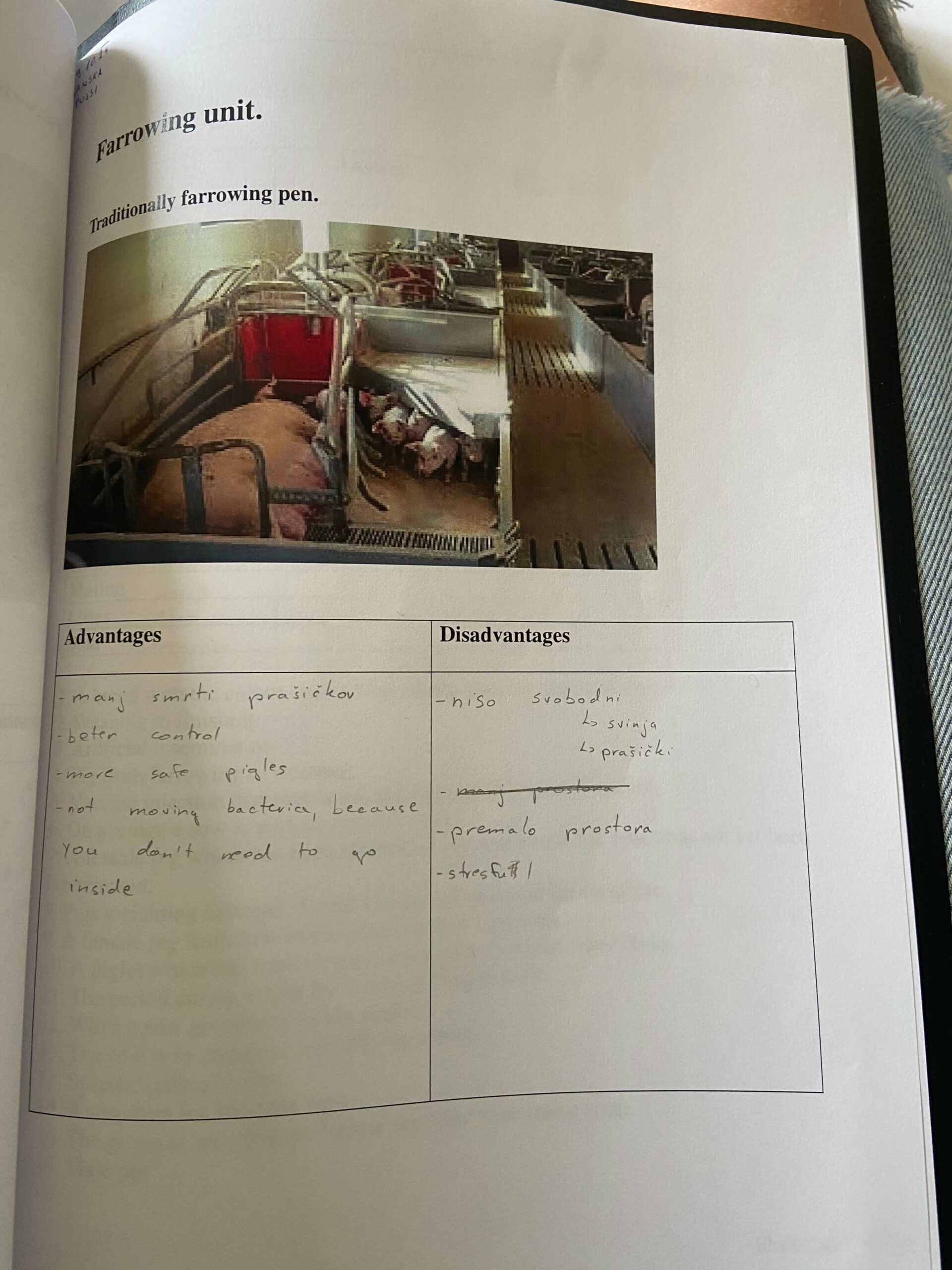 Kljub možnosti imeti zajtrk do 8.00, je bila danes ure bistveno prezgodaj, zato smo nekateri zajtrk pojedli, drugi pa so raje spanje podaljšali za nekaj minut. Vsebina usposabljanja nas je danes popeljala na svinjsko farmo. Oblečene v delovna oblačila so nas s šolskimi kombiji odpeljali na kmetijo/farmo z več kot 1000 pujsi. Z velikim zanimanjem smo si ogledali rejo vse od malih do velikih pujskov. Dijaki iz Slovenije so se zelo izkazali z znanjem, zanimanjem za rejo in s prijaznim odnosom do živali – tokrat do pujsov. Našim delovnim oblačilom smo dodali zaščitne bele kombinezone, obutev pa smo si zaščitili s posebnim PVC dodatkom, kar dokumentirajo tudi naše posnete fotografije. Hoji skozi poti te velike farme smo dodali opazovanje, kako svinje prasijo male pujske. Poleg možnosti in priložnost videti pujske stare le en dan, smo videli celo svinjo, ki je imela kar 24 majhnih pujskov, ki so se stiskali pri mamici in nekateri sladko spali. Samica z majhnimi pujski je živela ločeno od pujskov, ki so bili nekoliko starejši in so imeli svoje prostore poleg že omenjenih prostorov. Ti, malo starejši prašički so že živeli brez svinje in so bili odvisni sami od sebe. Imeli smo čast in možnost vzeti jih v naročje, jih tudi pestovali in čohali. Prostor se je ponovno ob naši hoji odprl in že smo bili v dvorani s srednje velikimi in velikimi svinjami, ki so čakale, da bodo dovolj stare za osemenjevanje. V času osemenjevanja / danes so nekatere osemenjevali/ svinje prestavijo v naslednjo stavbo, stavbo z boksi za osemenjevanje. Osemenjuje jih veterinarka kar ročno, pred svinjo pa se prosto sprehaja miren prasec, katerega naloga je vse njegovo življenje, stimulacija samice, pujse pri osemenjevanju. K naravnemu postopku oplojevanja pomaga tudi veterinarka s posebnimi prijemi z rokami ali z enostavnim sedenjem na samici. Nekaj tednov po osemenitvi samice pregledajo, če imajo v sebi prašičke. V primeru, da je breja, samice pujse združijo v skupne bokse, če pa osemenitev ni uspela, postopek osemenjevanja ponovijo. Svinje nenehno kotijo, postopek se tako nenehno ponavlja za čas samičine spolne aktivnosti. Po ogledu nas je Andreas s svojo kolegico učiteljico sprejel v posebnem prostoru za goste in nas pozval, če imamo na osnovi pisnega gradiva, ki smo ga prejeli, kakšno vprašanje pobudo oziroma ali bi želeli sporočiti kakšno pozitivno spremembo za obstoječo farmo. Z življenjem pujsov in delom na omenjeni farmi smo bili vsi zelo zadovoljni.