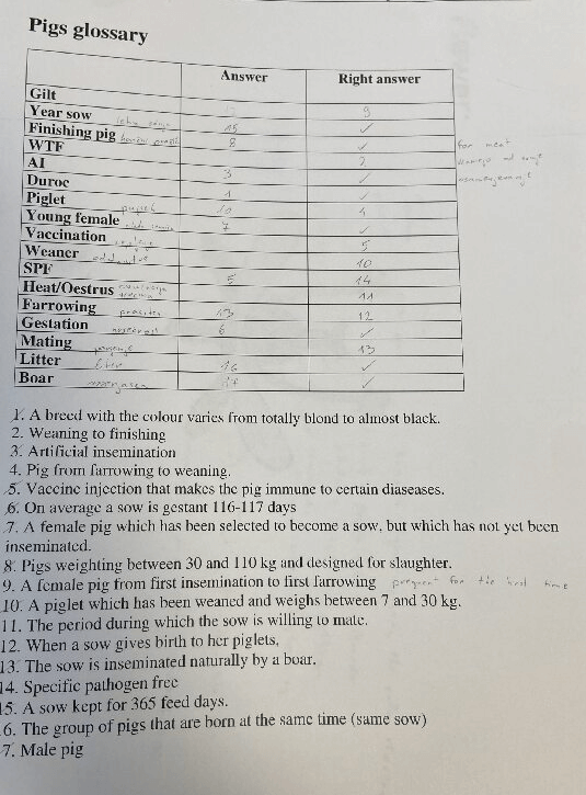 Ure biologije so hitro minile in tudi za nas je prišel čas kosila Kosilo res vsi vsak dan težko čakamo, saj je kot umetnina na mizi. Pestra izbira možnosti za sestavo solate po tvoji izbiri poišče brbončice v ustih in jih pripravi ne le na solate ampak tudi na glavno jed, ki je bila včeraj riba in krompir. Dober tek se je zaslišalo, nato pa je nastala tišina, kajti vsi smo enostavno le uživali v hrani. Kmalu je sledil drugi del sredinega pouka, ki je bil namenjen reji prašičev. Učno gradivo nas je skupaj z različnimi video posnetki vodilo skozi spoznavanje zgradbe, vedenja, prave »kondicije » prašičev s poudarkom na pravi reji od začetka do konca prašičevega življenja. Nova znanja bomo lahko uporabili ne le v šoli ampak tudi v življenju, če se odločimo za rejo prašičev. Vabljeni, da na osnovi spodaj dodanega učnega lista, preverite ne le vaše znanje na temo prašičev ampak tudi znanje angleškega jezika. preverite Srečno pri reševanju.